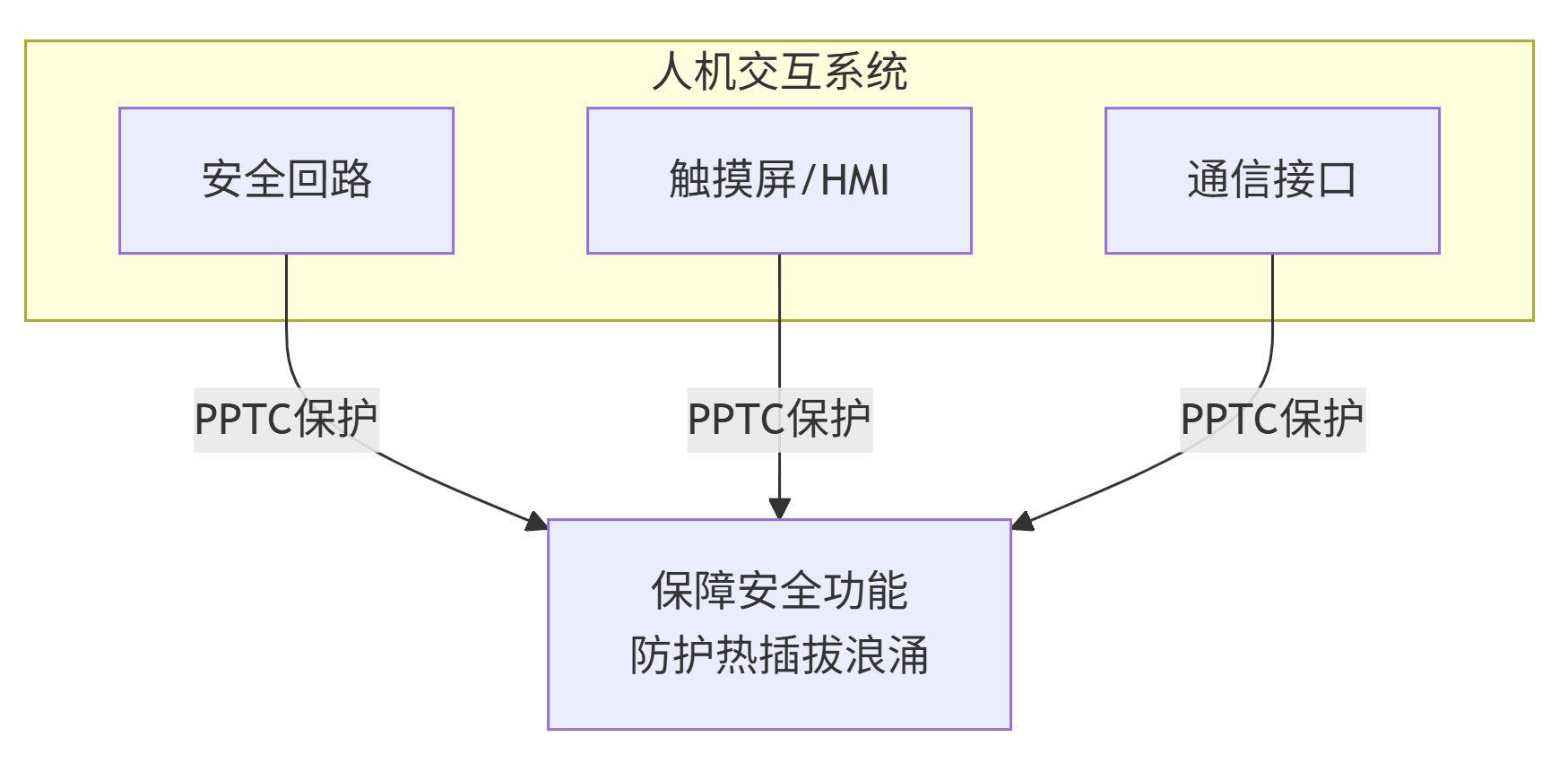 3. 人机交互与安全系统安全回路:在一些非核心的安全监控电路中,PPTC能确保该监控电路本身不会因过流而失效,保障其持续运行。